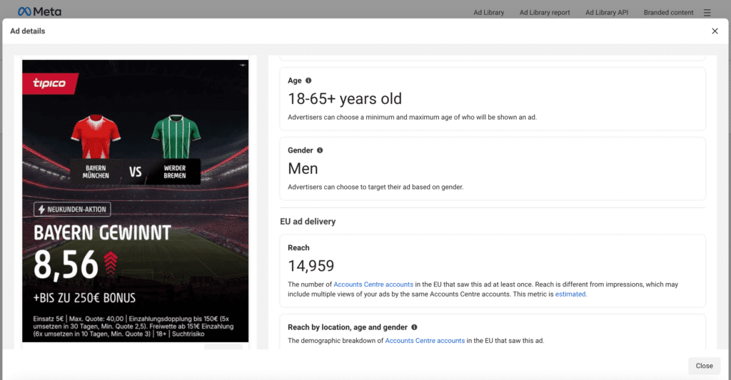 Under the DSA, major platforms are required to make commercial and political advertising more transparent. In practice, this means that if a Prop Firm or Broker is running campaigns in the EU, you can look them up and see key details such as: