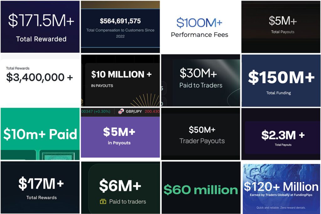 Several prop firms display total payout figures on their websites. These numbers are usually presented in large fonts or even as live counters that increase over time. The intention is to signal transparency and to provide potential traders with a sense of credibility.