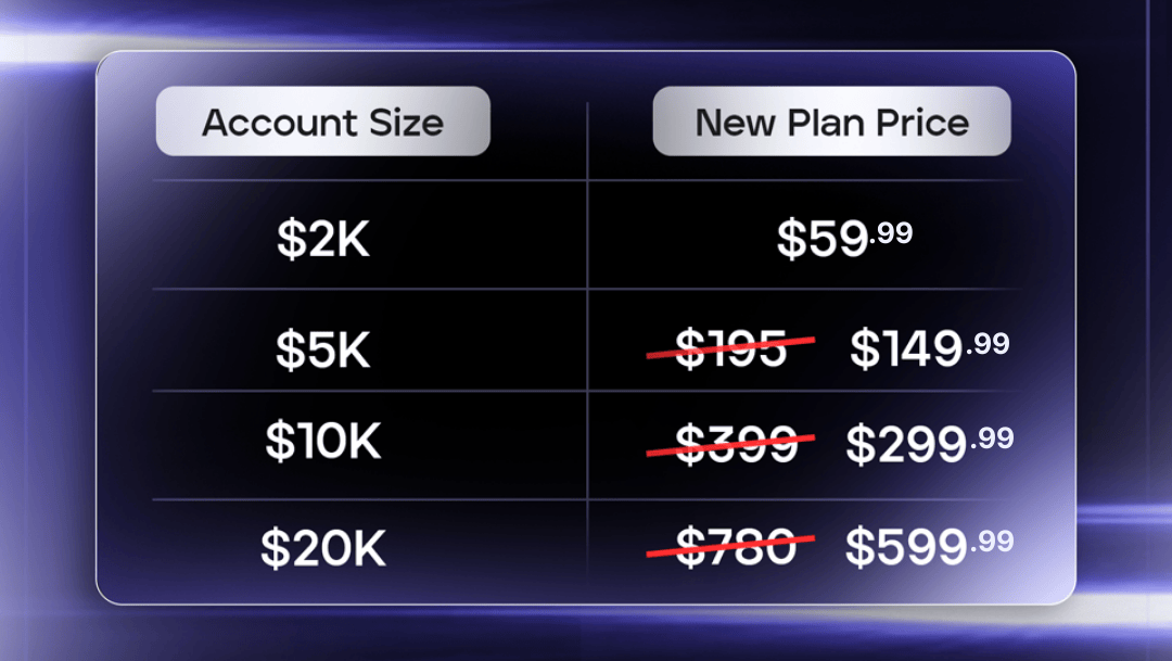 By popular demand, prices are reduced by up to 25% on select Stellar Instant account sizes. |