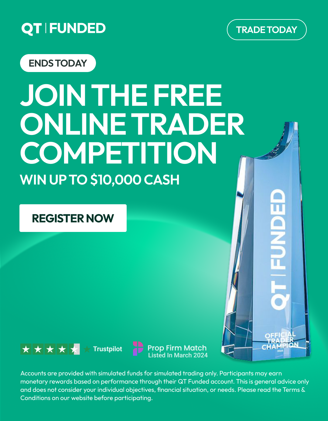 General Risk Disclaimer The content of this website is for general educational purposes only and does not constitute investment advice, a solicitation, or an offer to buy or sell any financial instruments. QTFunded, its affiliates, employees, and contractors do not make any representations regarding the suitability or profitability of any trading strategy or financial instrument.